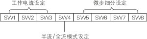 SW4定义:用户可通过SW4来设定驱动器的自动半流功能。off表示静态电流设为动态电流的一半,on表示静态电流与动态电流相同。一般用途中应将 SW4 设成 off,使得电机和驱动器的发热减少,可靠性提高。脉冲串停止后约0.4秒左右电流自动减至一半左右(实际值的60%),发热量理论上减至36%。