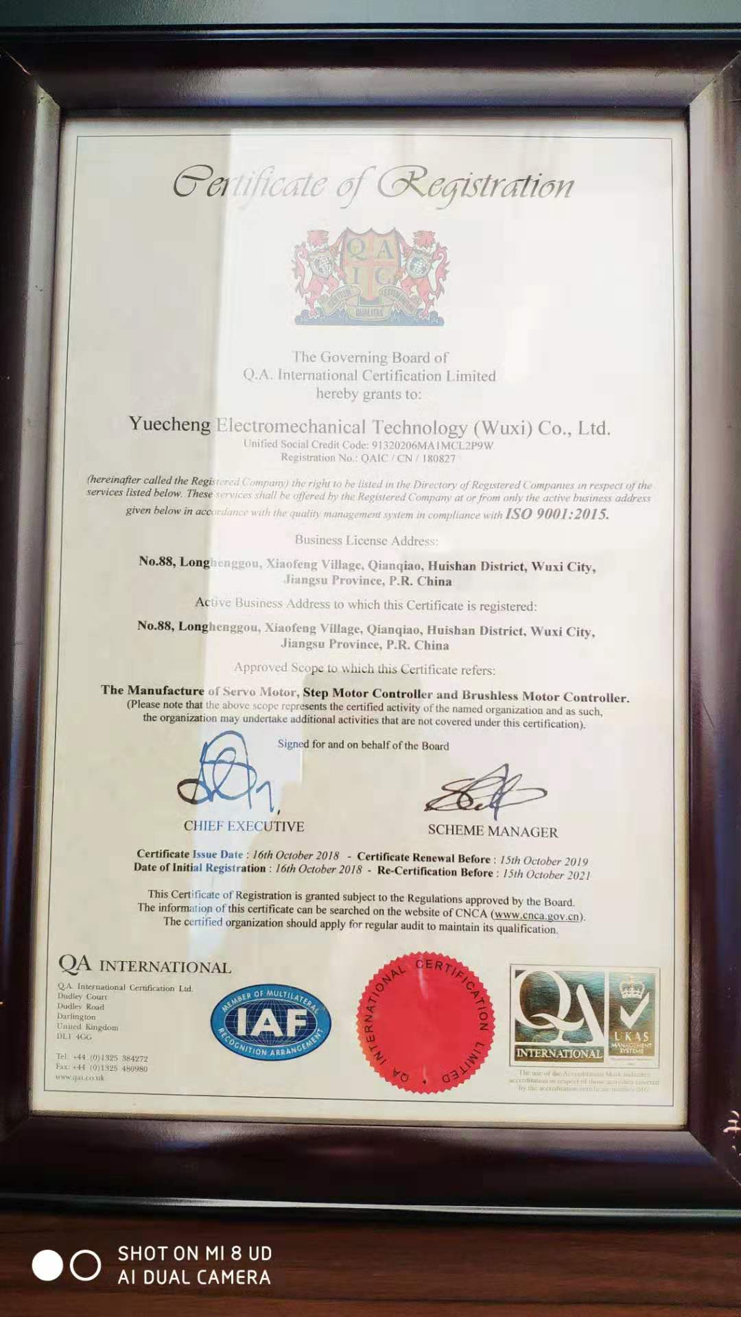 审核组通过现场询问、查看和抽样方式等形式,对质量方针、质量目标的完成情况以及全过程的控制情况进行了检查,经过严格审核,审核专家一致通过我公司的认证注册资格,并于2018年10月16日正式颁发ISO9001:2015质量管理体系证书